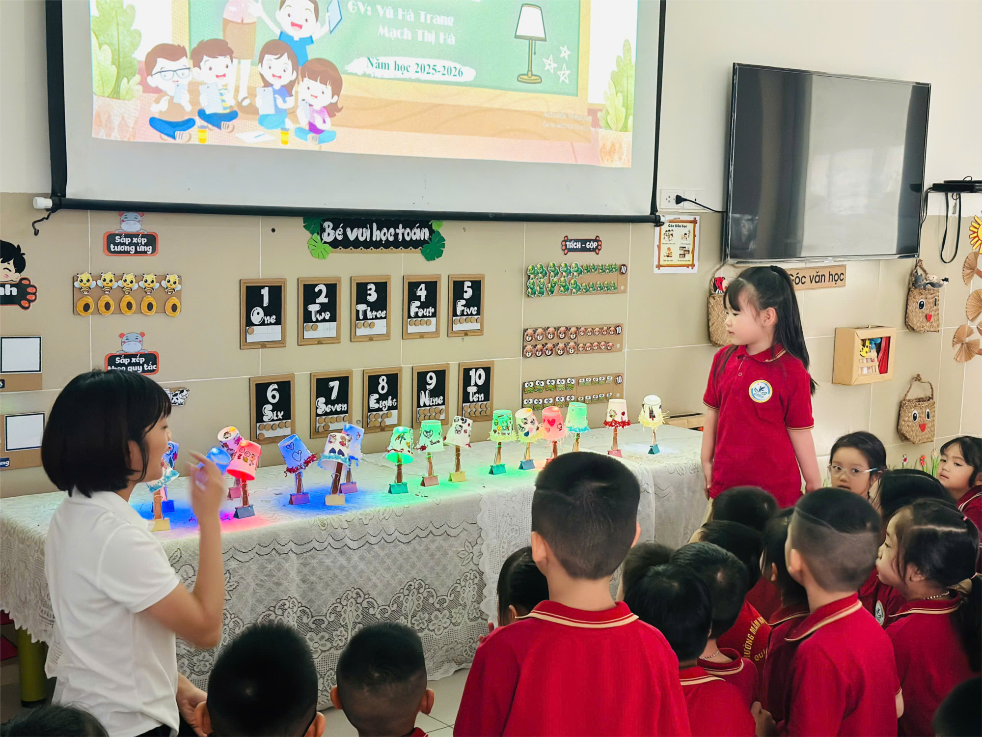 Trong không khí thi đua sôi nổi của hội giảng năm học 2025–2026, cô và trò lớp Mẫu giáo lớn A4 – Trường Mầm non Chim Én đã mang đến một tiết học thật đặc biệt với chủ đề “Chế tạo và trang trí đèn ngủ mini”.