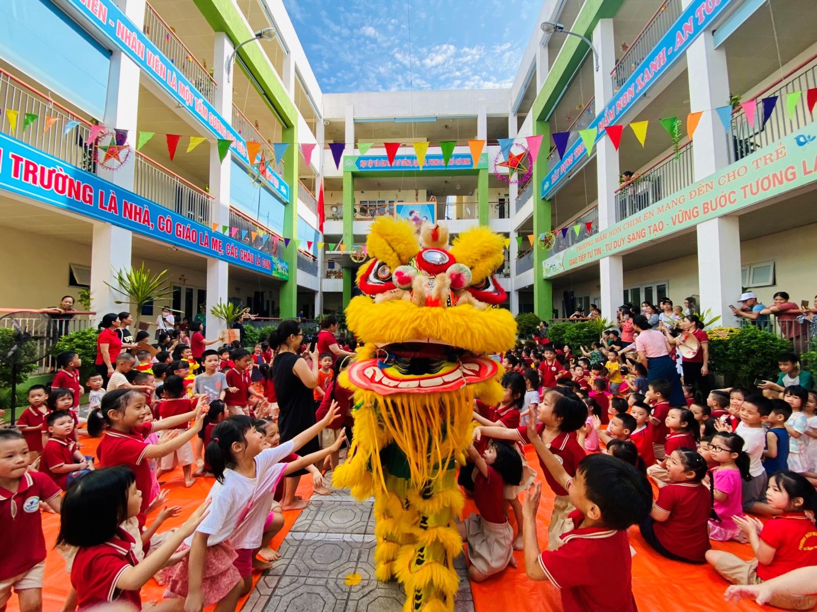 !important; Chương trình “Vui hội trăng rằm” còn có những tiết mục văn nghệ vô cùng đáng yêu do các bé trường mầm non Chim Én thể hiện đem đến bầu không khí sôi động đầy niềm vui, niềm phấn khởi và hạnh phúc lan tỏa khắp sân trường. Những khuôn mặt xinh xắn chan chứa niềm háo hức được gặp chị Hằng, chú Cuội cùng các tiết mục ảo thuật đặc sắc đến từ các chú hề vui nhộn.