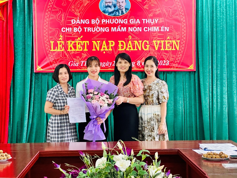 !important; Để vinh dự đứng trong hàng ngũ của Đảng, đồng chí Nguyễn Thị Thanh Huyền dưới sự dìu dắt của nhà trường, chi bộ Đảng trường Mầm non Chim Én đã không ngừng phấn đấu, rèn luyện trong quá trình học tập rèn luyện, tu dưỡng đạo đức theo lý tưởng, tôn chỉ của Đảng Cộng sản Việt Nam, lấy tư tưởng Hồ Chí Minh làm kim chỉ nam cho mọi hành động. Là một Đảng viên mới, đồng chí càng ý thức rõ hơn về trách nhiệm của bản thân đối với gia đình, xã hội và Nhà trường. Đây là sự kiện dánh dấu một bước ngoạt đối với đảng viên trẻ Nguyễn Thị Thanh Huyền.