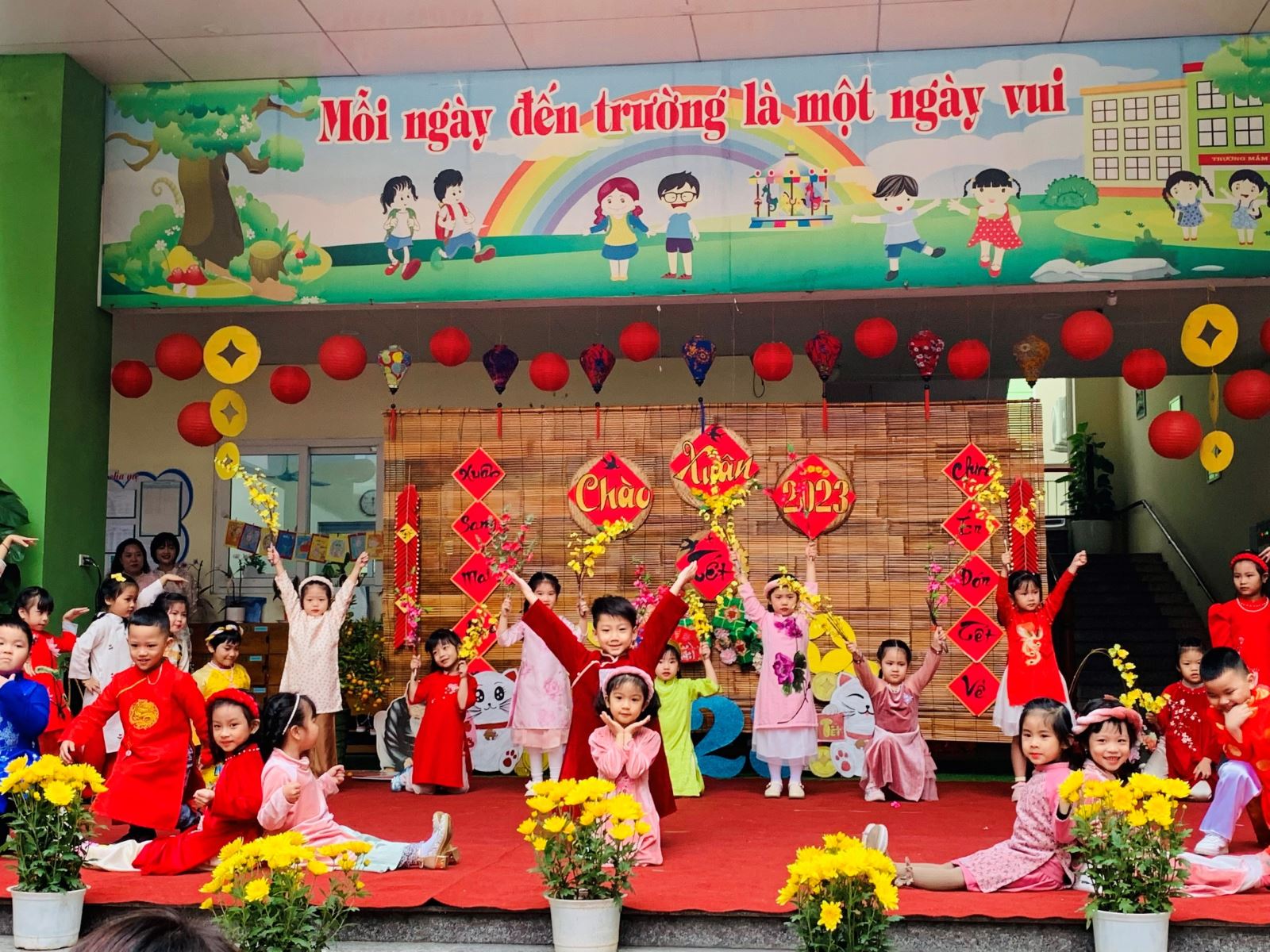 Mở đầu hoạt động, lời ca tiếng hát, điệu nhảy rộn ràng của những “chim én” nhỏ đã sắc xuân về hòa chung không khí hân hoan nơi sân trường. Đặc biệt phần giao lưu, trò chuyện cùng các chú bộ đội đến từ Lữ đoàn 918 và thầy giáo Alex đến từ trung tâm Anh ngữ Enspire đã giúp các bé được khám phá những nét văn hóa khác nhau trong ngày Tết. Các bé được nghe ông bà, bố mẹ chia sẻ những câu chuyện giản dị, ấm áp về mùa xuân và ngày tết Nguyên Đán giúp các bé có thêm hiểu biết và trân trọng những giá trị của nét đẹp văn hóa dân tộc Việt Nam.