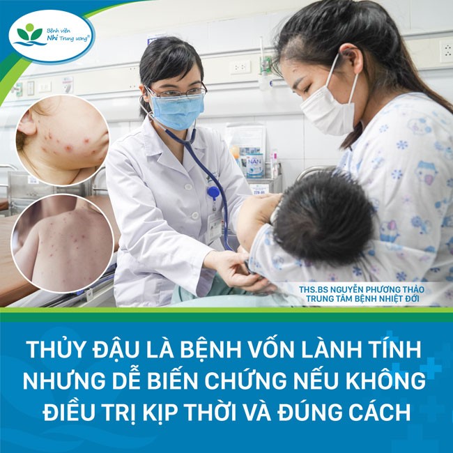 ThS.BS Nguyễn Phương Thảo – Trung tâm Bệnh nhiệt đới, Bệnh viện Nhi Trung ương cho biết: Trẻ nhỏ, nhất là trẻ sơ sinh khi mắc thủy đậu rất dễ gặp những biến chứng khó lường, vì vậy việc cha mẹ nhận biết được biểu hiện bệnh sớm, theo dõi dấu hiệu trở nặng để đưa con đến cơ sở y tế điều trị kịp thời là vô cùng cần thiết.