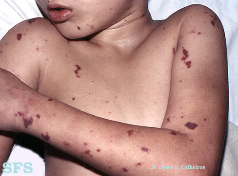 sáng), lơ mơ, co giật, phát ban thành những chấm đỏ hoặc tím hoặc đám