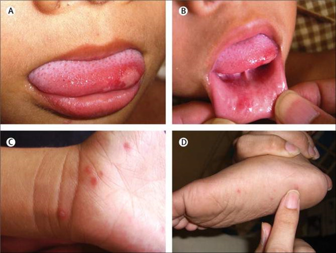 | Các biểu hiện của bệnh tay chân miệng ở trẻ. Ảnh: