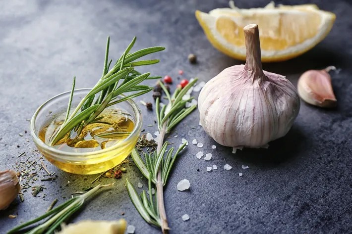 Công thức làm dầu ngâm tỏi: Vài nhánh tỏi tươi, dầu ô liu. Băm nhuyễn vài nhánh tỏi. Để yên trong 10 phút. Cho tỏi vào lọ nhỏ rồi thêm dầu ô liu. Để hỗn hợp ngấm trong tối thiểu 30 phút, tối đa 12 giờ.