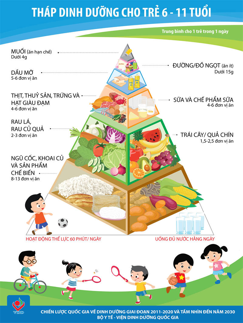 - Thực hiện tốt 10 Lời khuyên dinh dưỡng hợp lý; Các khuyến cáo về tiêu thụ thực phẩm phù hợp cho mỗi nhóm tuổi (theo Tháp dinh dưỡng dành cho các lứa tuổi khác nhau, do Viện Dinh dưỡng – Bộ Y tế ban hành);
