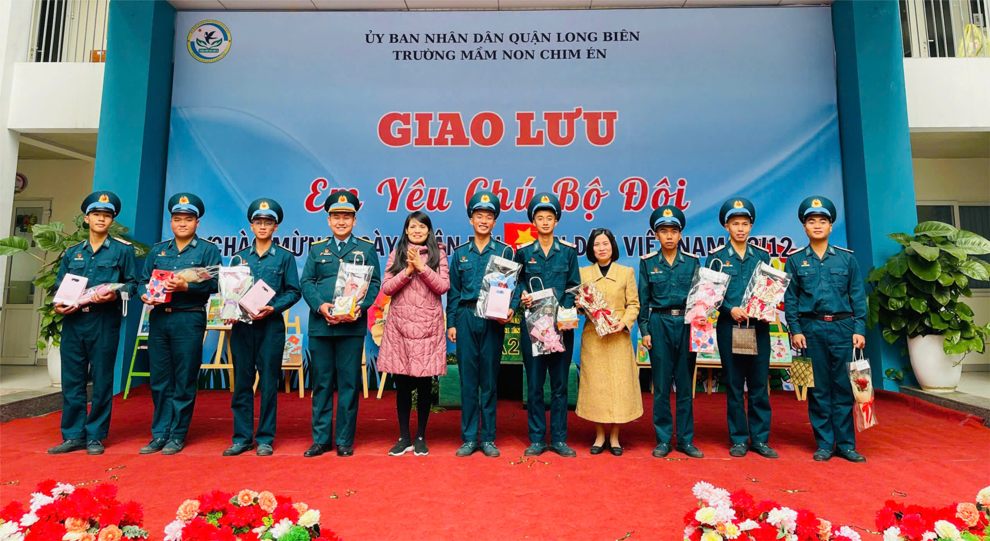 Buổi sáng mùa đông trong sân trường mầm non Chim Én được sưởi ấm bởi không khí rộn ràng với các tiết mục văn nghệ về người lính được các bé gửi tặng đến các chú bộ đội mến yêu. Đáp lại tình cảm, các chú bộ đội cũng có tiết mục hát song ca gửi tặng cô và trò, các chú cùng các bạn khối mẫu giáo lớn tập đội hình đội ngũ cùng tham gia vào các bài tập rèn luyện sức khỏe và sự dẻo dai.