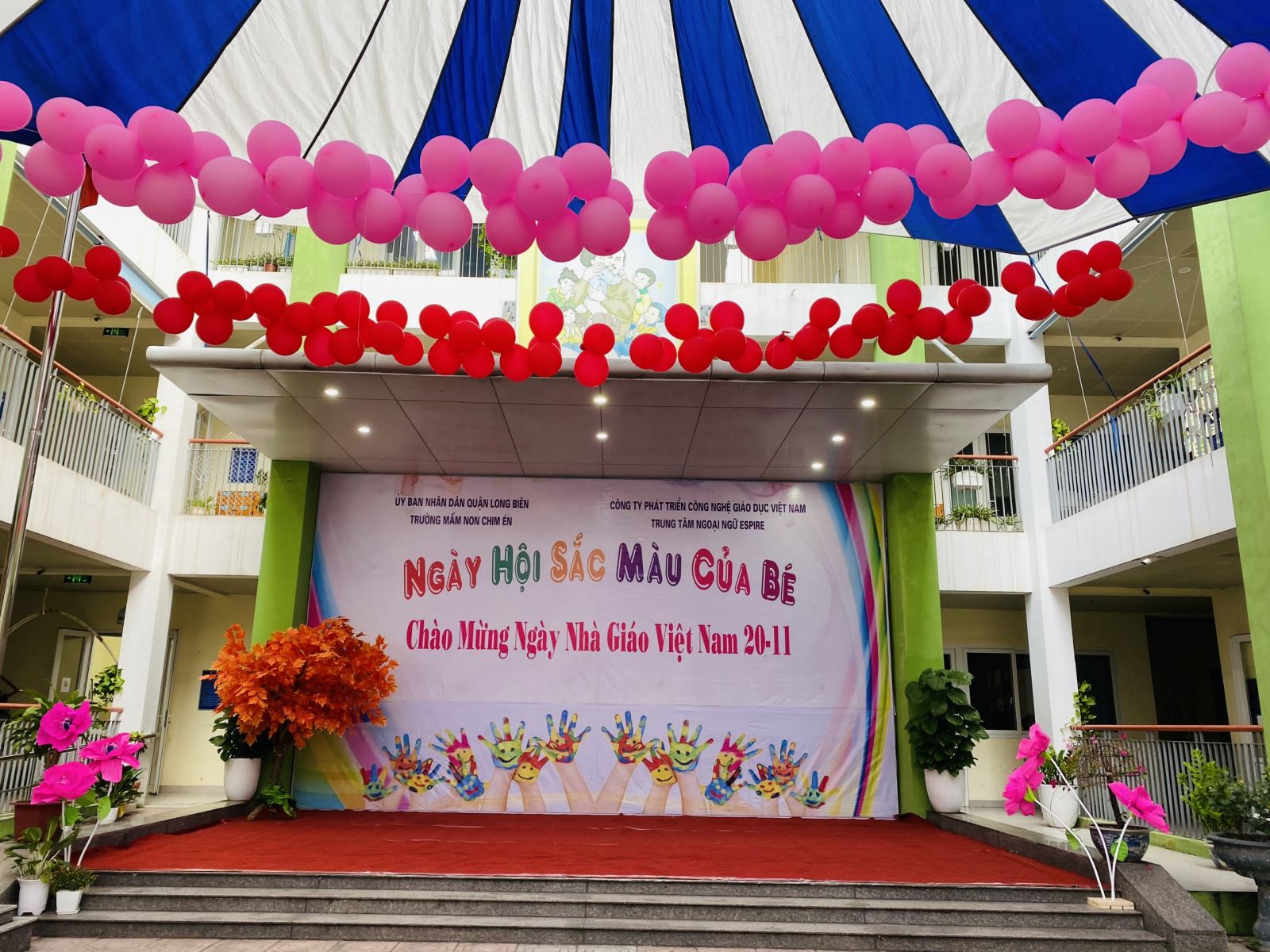 Khung cảnh rực rỡ sắc màu trong ngày hội được tạo nên từ các tác phẩm tranh chào mừng ngày nhà giáo Việt Nam 20/11 với nhiều nguyên liệu màu, chất liệu phụ kiện an toàn do chính bàn tay của các con cùng cô giáo thực hiện. Ý nghĩa của Ngày hội sắc màu không chỉ cùng các con tìm hiểu về ý nghĩa của các màu sắc cơ bản, nguyên lý pha chế, sử dụng màu từ đó các con khám phá ra rằng màu sắc có khả năng ảnh hưởng đến cảm xúc và tâm trạng, là công cụ để giao tiếp và thể hiện tính cách của bản thân.