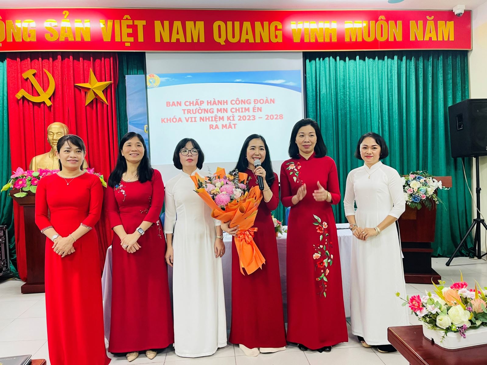 Chi bộ trường mầm non Chim Én trao hoa chúc mừng 05 đồng chí trong BCH công đoàn nhiệm kỳ 2023 - 2028