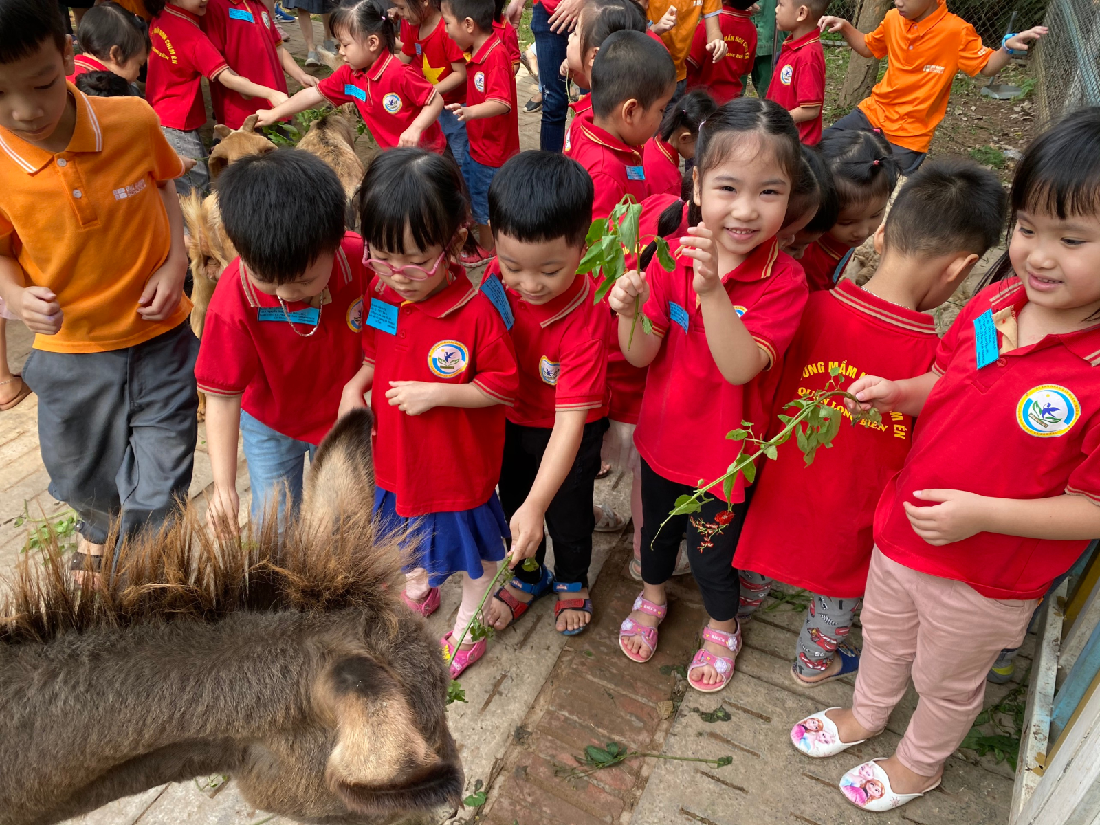 Các bé rất thích cho lừa ăn cỏ