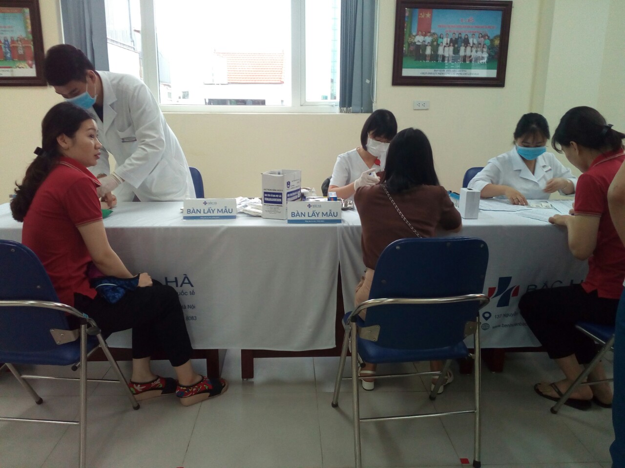 Sau đây là 1 số hình ảnh trong buổi khám sức khỏe của CBCNV trường mầm non Chim Én: