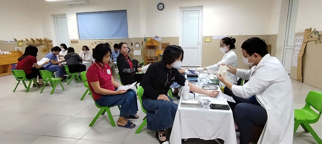 Công tác khám sức khỏe được đội ngũ bác sỹ Bệnh viện Melatec chuẩn bị chu đáo và thực hiện ngay tại trường nhằm tạo điều kiện thuận lợi cho cán bộ, giáo viên, nhân viên trong giảng dạy, công tác. Nhà trường đã lựa chọn gói khám tổng quát, đầy đủ và cần thiết như: khám thể lực, khám nội, ngoại khoa, khám răng hàm mặt, tai mũi họng, da liễu, mắt, phụ khoa, xét nghiệm 18 chỉ số máu, xét nghiệm đường máu, siêu âm ổ bụng.