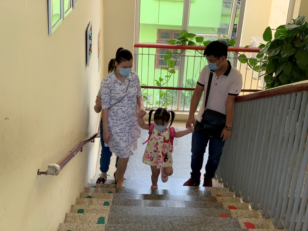 Các bạn nhỏ được bố mẹ đưa tới trường từ rất sớm với vui, niềm háo hức buổi đầu năm học