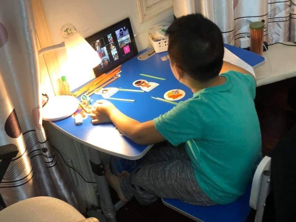 Chính vì vậy, ngay khi triển khai hình thức dạy học online, Ban giám hiệu trường Mầm non Chim Én đã chỉ đạo giáo viên khối mẫu giáo lớn xây dựng kế hoạch tăng cường các hoạt động giúp trẻ có thêm kiến thức, kỹ năng, tâm thế chuẩn bị vào lớp 1 như: rèn cho trẻ trách nhiệm thực hiện nhiệm vụ, tư thế ngồi học, cách cầm bút, hoạt động ngôn ngữ, làm quen với chữ cái, làm quen với toán...