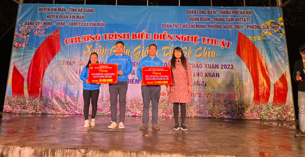 Ngày 1/1/2023 nhà trường cùng đoàn TN Gia Thụy cũng đến thăm và tặng quà các cán bộ chiến sĩ đồn Biên phòng xã Xín Mần – Hà Giàng và tìm hiểu về tình hình an ninh vùng biên .Thăm quan và học tập tại cửa khẩu quốc tế xã Xín Mần, cột mốc 197,198. Mốc giới giữa Việt nam và Trung Quốc.