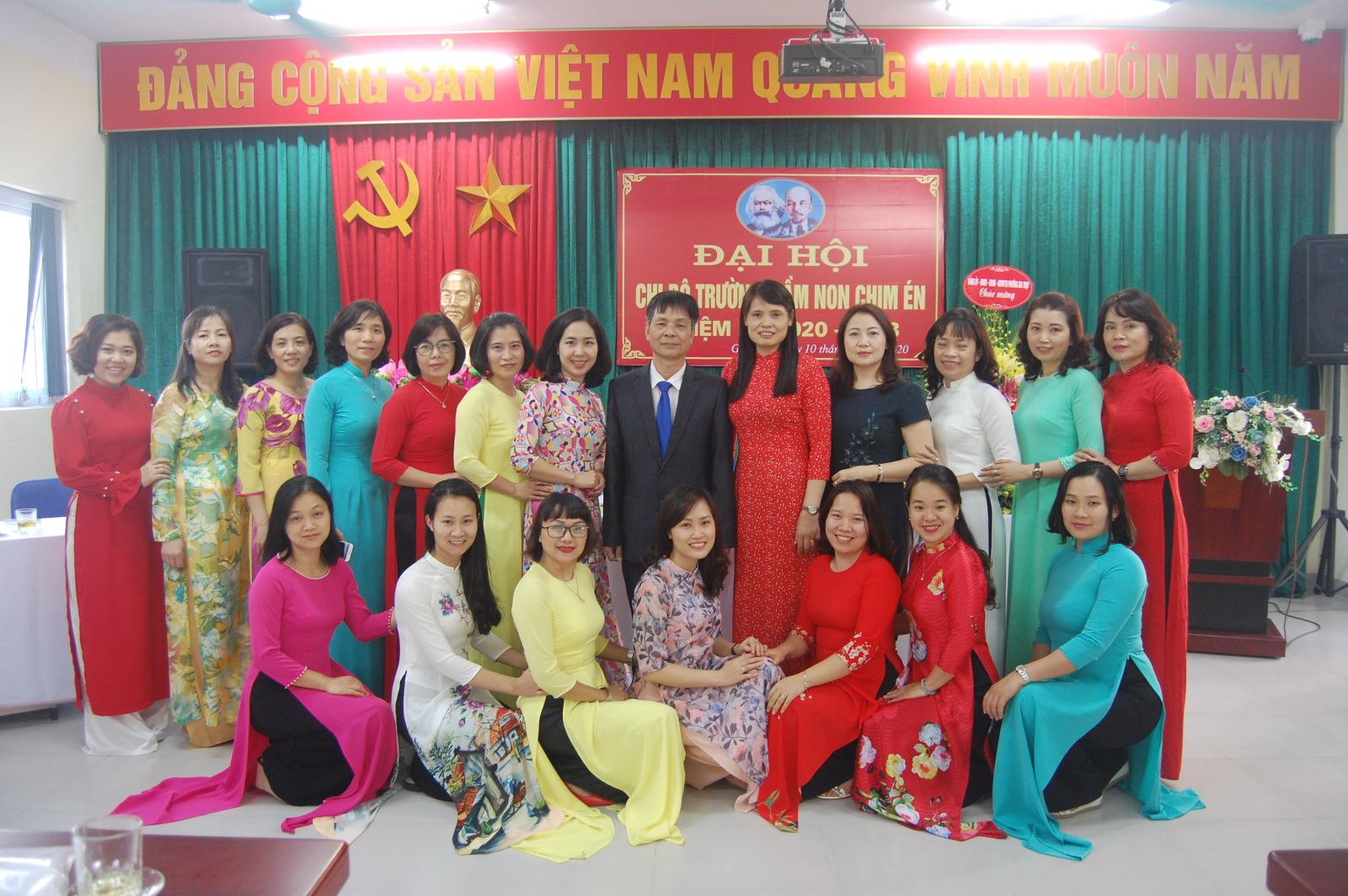 Đại diện các ban ngành, đoàn thể trong nhà trường có bó hoa tươi thắm chúc mừng BCH chi bộ nhiệm kỳ 2020-2023.