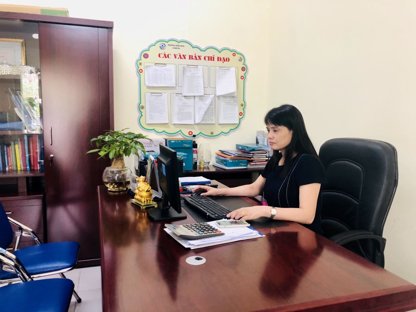 Cô giáo Vũ Thị Phương - Hiệu trưởng trường mầm non Chim Én trong giờ làm việc