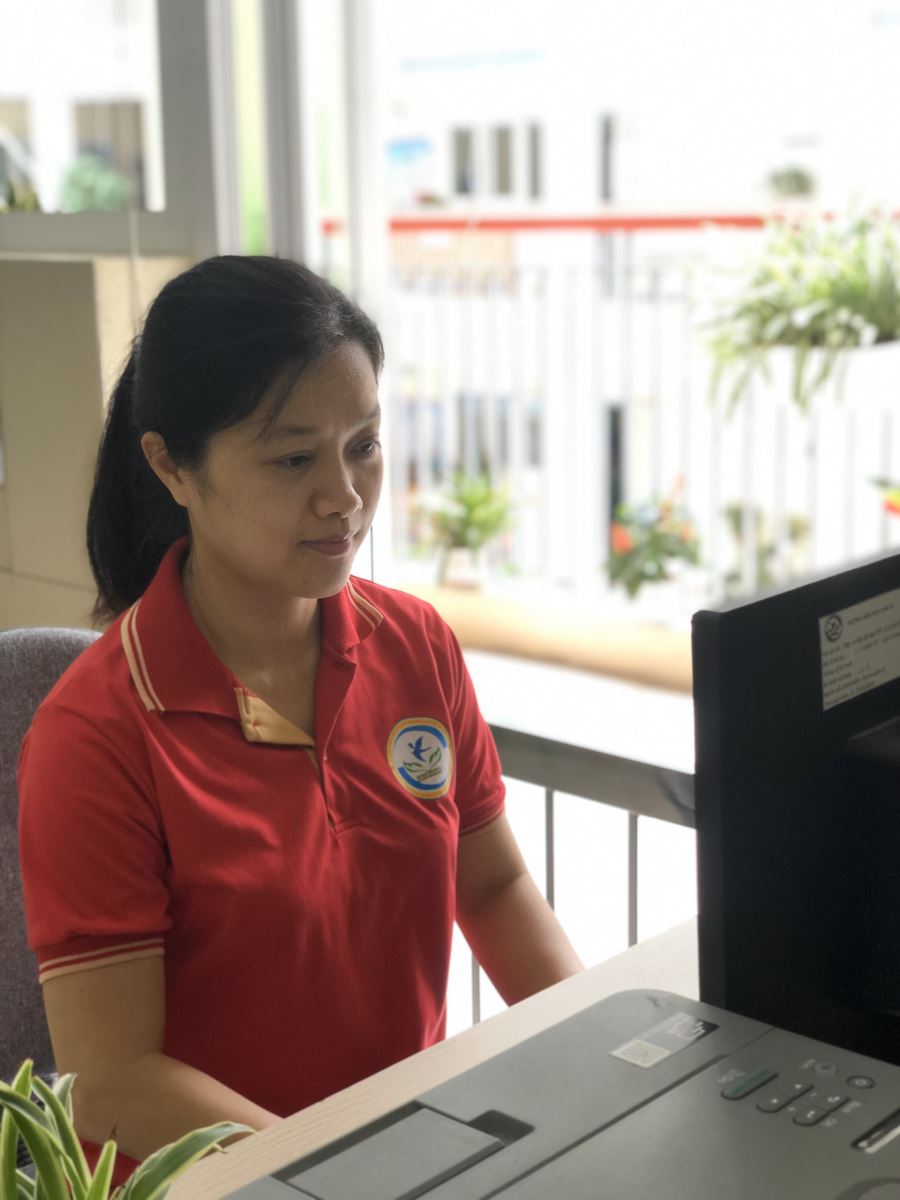 Chị tâm sự với tôi: “Có lẽ điều quan trọng nhất đối với chị khi mới chập chững bước vào nghề đó là chị may mắn được cống hiến trong một môi trường thuận lợi, một tập thể đoàn kết, hết lòng vì đồng nghiệp, sẵn sàng chia sẻ những kinh nghiệm. Vượt lên trên tình đồng nghiệp, giữa các chị là tình yêu thương, tình chị em chung sống trong mái nhà “mầm non Chim Én” và cũng chính nơi đây đánh dấu sự trưởng thành của chị là những năm đạt giáo viên giỏi cấp Thành phố, ngày được vinh dự đứng trong hàng ngũ của Đảng.