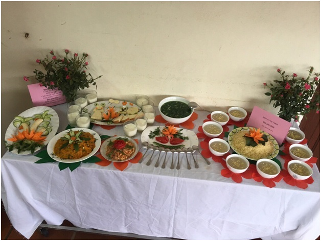 Mặc dù với cơ sở vật chất vô cùng khó khăn nhưng các đ/c nhân viên nuôi dưỡng đã tích cực tham gia hội thi với tinh thần hăng say, tay nghề vững vàng, sự tận tâm, trách nhiệm, chế biến các món ăn với khẩu phần dinh dưỡng cân đối, hương vị thơm ngon, hấp dẫn với cách trình bày đẹp mắt. Các món ăn đạt lượng Kcal cao, giá thành đảm bảo, sử dụng các nguyên liệu sẵn có tại địa phương, phù hợp theo mùa.