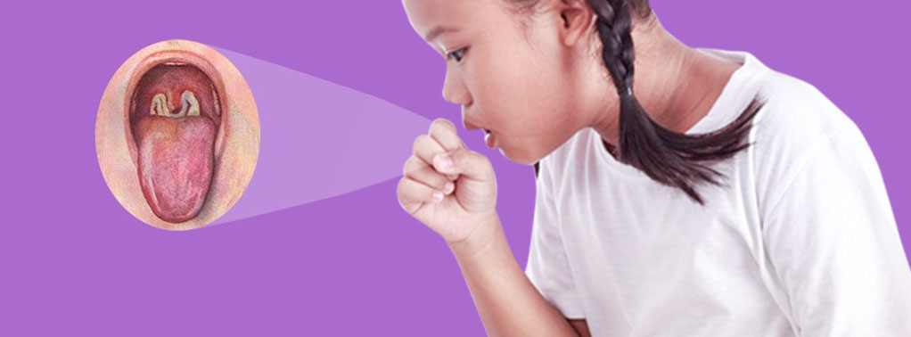 Triệu chứng dễ nhận thấy nhất của bệnh bạch hầu là hình thành mảng màu xám, dày ở họng và amidan