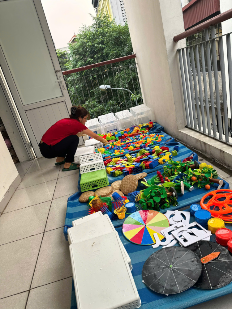 Nhà trường đã trang bị đầy đủ đồ dùng, trang thiết bị như: găng tay cao su dài, khẩu trang vải, xô, chậu, khăn lau, cây lau nhà, hóa chất tẩy rửa thông thường,...phục vụ cho công tác tổng vệ sinh, khử khuẩn. Các lớp học, phòng chức năng, hệ thống phòng hành chính, khu vực bếp ăn, sân chơi, vườn cây, khu vệ sinh...